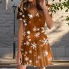 Summer Fashion Women's V Neck Short Sleeve Snowflake Printed Dress Sex Short Skirt Dresses