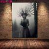 Ghost House and Gothic Witch, Antique Wall Oil Painting, Retro-decoration of the Witch's Room, Art Poster