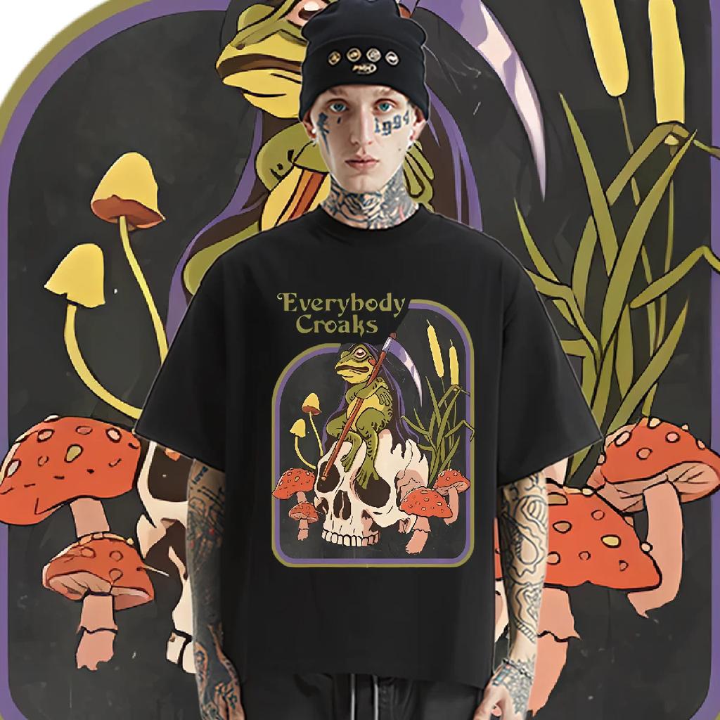 Skull Round Collar Big Size Loose Tops Classic Vintage Men's Tee High Quality Rapper Shirt Casual Style Tshirt Frivolous Tees