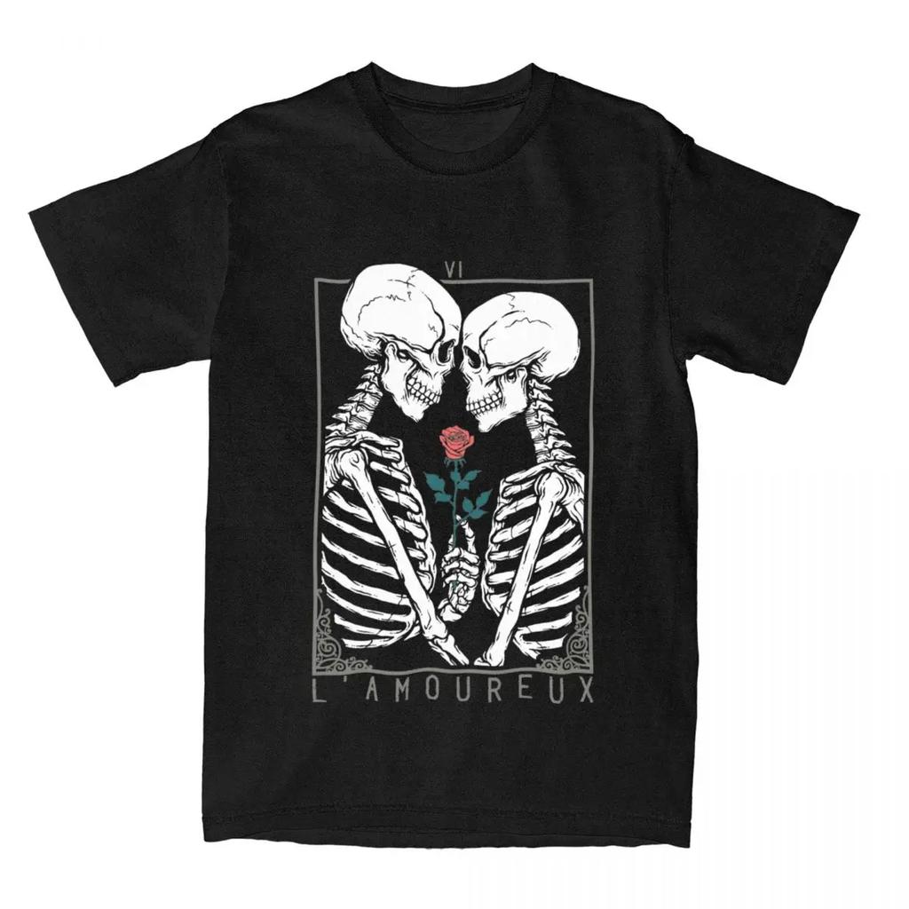 Skull VI The Lovers Tarot Card Apparel Shirts Men Women Skeleton Couple Kiss Funny Unique Tee Shirts