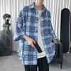 2025 Summer Men Korean Striped Plaid Print Shirts Men Fashion Harajuku Casual Oversized Shirt Men Streetwear Clothing
