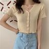 Fashion Versatile Fashionable V-neck Short Revealing Top Outside The Thin Section of Short-sleeved Knit Sweater Female Casual Slim Fit Pullovers Tees