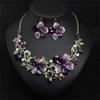 Floral Crystal Jewelry Set - Colorful Gemstone Necklace & Earrings for Bride & Evening Party