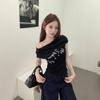 Women's 2025 One-Shoulder Short-Sleeve Letter Print Slim T-Shirt – Versatile Hot Girl Summer Top