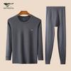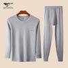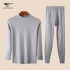 Experience comfort and warmth with this men's thin pure cotton autumn underwear set. Crafted from high-quality cotton, this two-piece set features a long-sleeve round neck shirt and matching pants, designed to keep you cozy during the cooler months. With a solid pattern, this set offers a sleek and classic look perfect for layering under your daily attire or lounging at home.