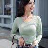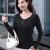 2025 Slim V-Neck Ribbed Long-Sleeve Top - Versatile Solid Color for Women's Layering