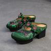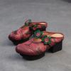 Johnature Ethnic Style Thick Heel Round Toe Outdoor Slippers Retro Printed Genuine Leather Women's Shoes