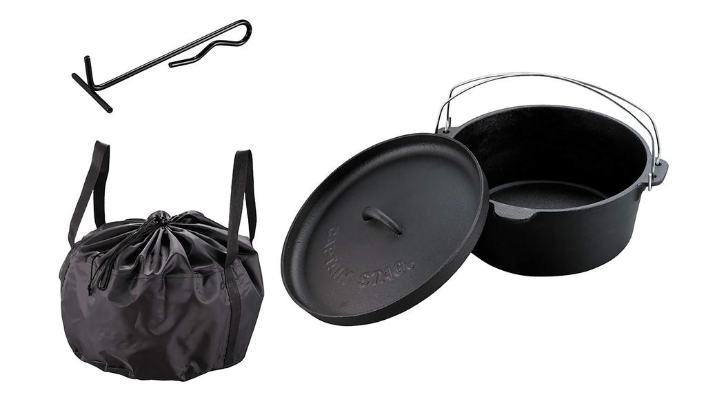 CAPTAIN STAG Dutch Oven Cast No Seasoning Lid Lifter and Storage Bag Included Set, Iron, 30cm, Required, UG-3049