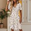 Women's Casual Fashion Dress Vintage Floral Floral Short Sleeve V-neck Dress