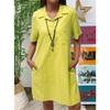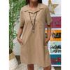 Cotton Linen Solid Color Loose Shoulder Short Sleeved Pocket Casual Jumpsuit Dresses