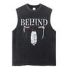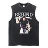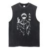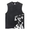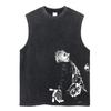 Summer Men Vintage Streetwear Sleeveless T-Shirts Cotton Tops Tees Washed Anime Print Casual Tops Oversize Tank Top