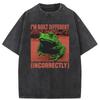 The Horrors Are Never Ending Yet I Remain Silly T-shirt Japanese Style Frog Retro Cotton Washed T Shirt Men's Oversized