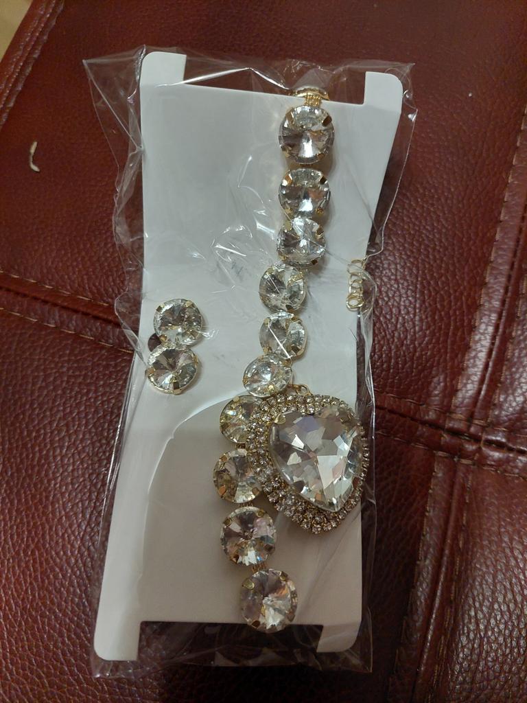 Exquisite Geometric Diamond Heart Necklace & Earrings Set - Luxury European & American Design