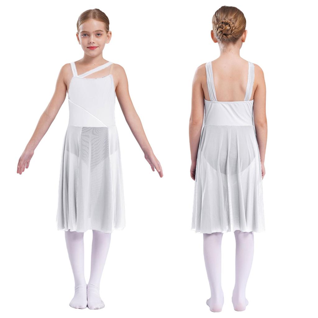Kids Color Block Dance Dress with Mesh Shoulder Straps Modern Lyrical Leotard Costume