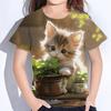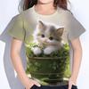 Girl Clothes Cute Cat Print T Shirt Short Sleeve Girl T-Shirt Summer Kids Clothes Crew Neck Tee Top Shirts Fashion Child T Shirt