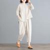 Summer Round Neck Half Sleeve Striped Single Breasted Shirt Sets Elastic Waist Cotton Hemp Pockets Loose Casual Haren Pants Suit