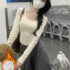 Thickened White Square Collar Bottoming Shirt for Women with Slim German Velvet T-shirt for Women with Long Sleeves for Women with Super Figure