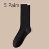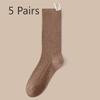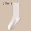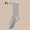 5 Pairs of Women's Autumn Solid Color Cotton Mesh Breathable Mid Tube Pile Socks