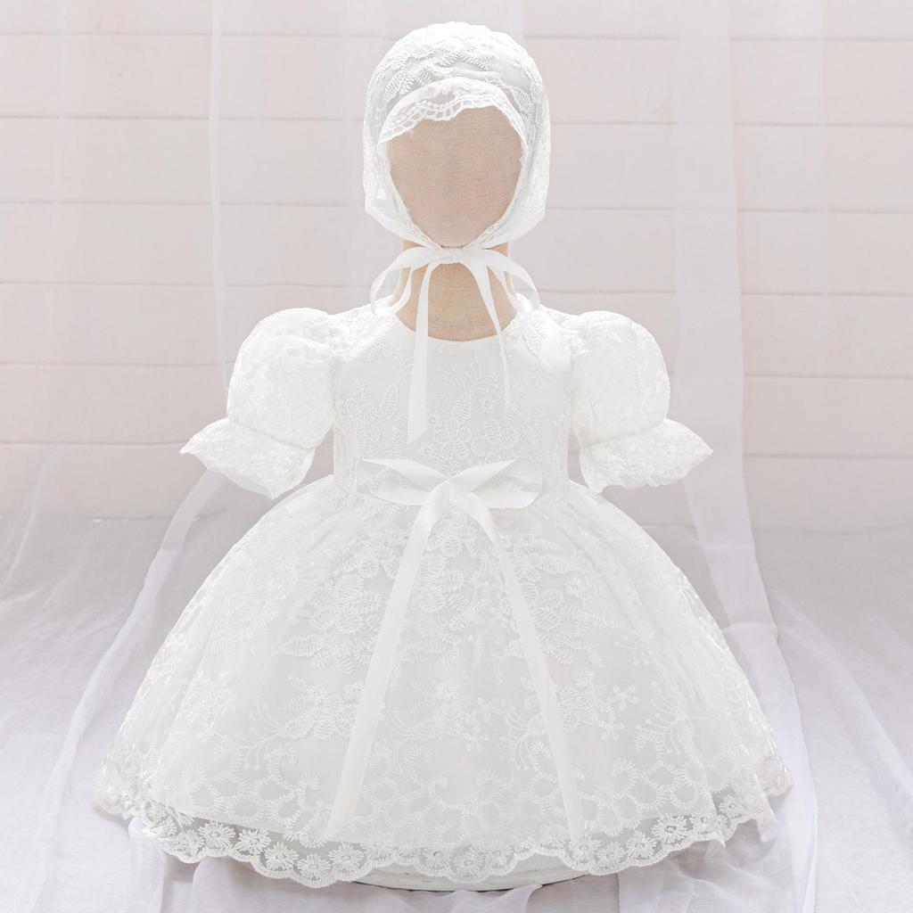 This charming baby lace christening dress is perfect for special occasions. Crafted from a comfortable cotton blend, it features delicate lace detailing and a puffy skirt, providing an adorable and elegant look. The outfit is completed with a matching hat, making it an ideal choice for milestone celebrations. Designed to combine style and comfort, this dress ensures your little one looks precious on their special day.