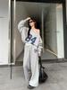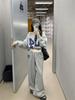 2024 Spring/Fall Women's Asymmetrical Shoulder Digital Print Sweatshirt & Loose Trousers Set