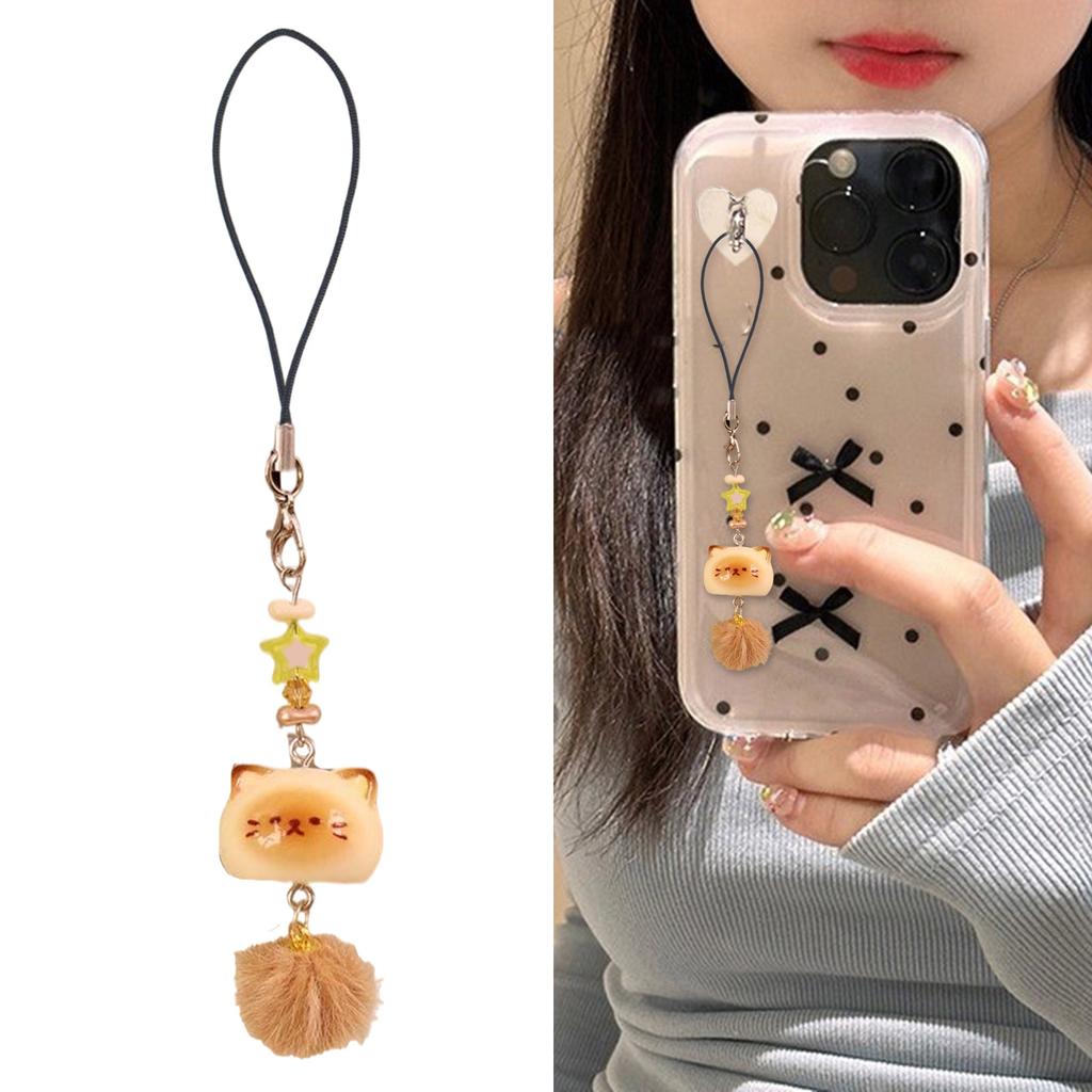 Cute Cat Key Lanyard Wrist Strap Phone Lanyard Cartoon Phone Charm Resin Texture Perfect for Bags Phones and Keys