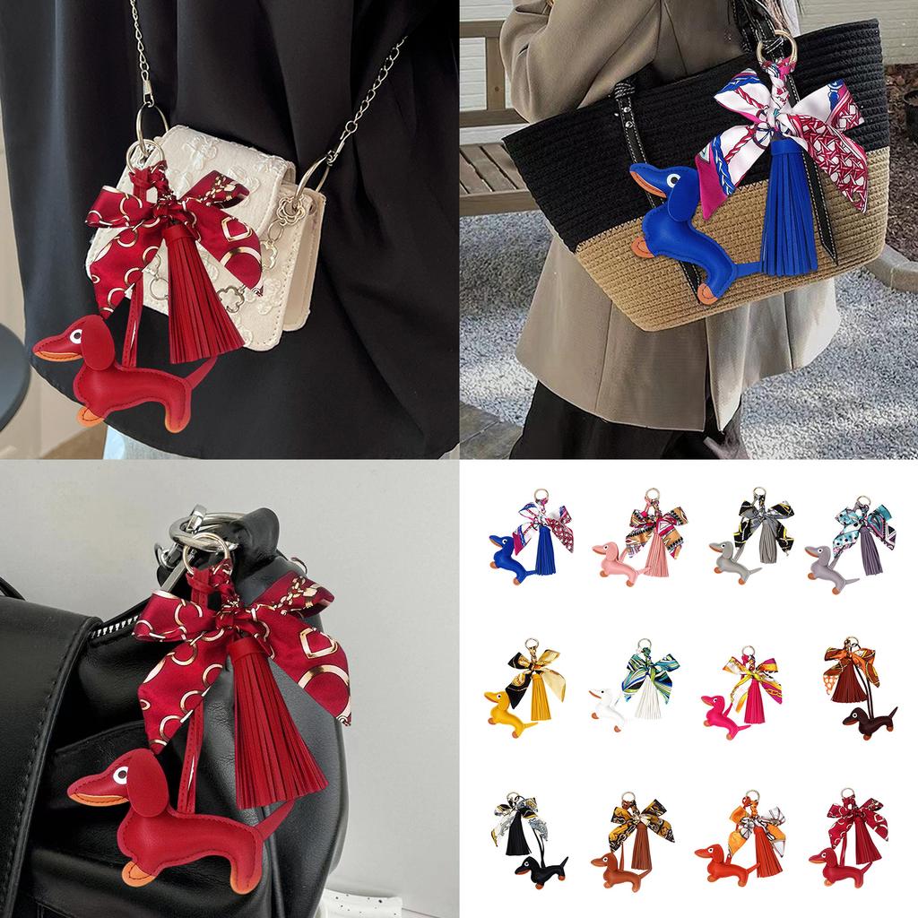 Stylish Dachshund Pendant with Soft Leather Tassels Bowknot Key Holder Fashion Charm Perfect for Bags or Car Decoration