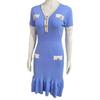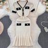 Elegant V-Neck Knitted Fishtail Sweater Dress with Trendy Contrast Colors and Short Sleeves