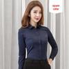 Elevate your professional wardrobe with this elegant women's shirt, designed in the new Spring/Summer Korean style. Crafted with a blend of polyester and cotton, this top offers both comfort and durability. The solid-patterned design features a sophisticated v-neckline and long sleeves, perfect for a formal office setting. The patchwork and quilted decorations add an extra touch of style, creating a unique and chic look. Available in large sizes, this shirt comes in versatile gray and navy hues, making it an ideal addition to any professional outfit.