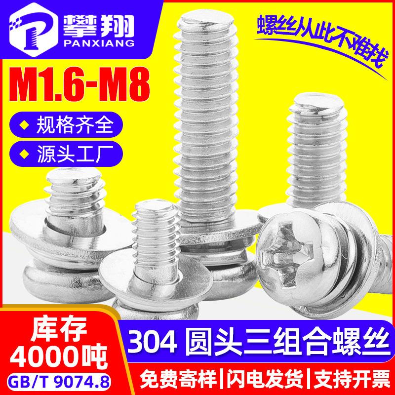 304 Stainless Steel M2/M3/M4 Round Head Screw with Cross Pan Head and Flat Spring Washer Combination
