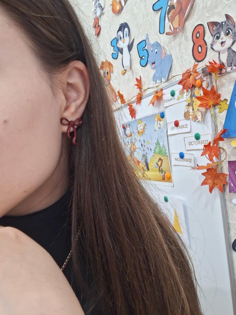 Retro Red Bow Earrings for Women - High-End Silver Needle Design, White and Sweet Autumn/Winter Style
