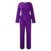 Discover the perfect blend of style and comfort with this European-American two-piece suit, ideal for the autumn and winter seasons. The solid-colored outfit features a ruffled V-neck top paired with matching pants, exuding a chic yet sportive vibe. Designed with ruched details, this ensemble offers a fashionable twist to your casual wardrobe. Made entirely from polyester, it ensures warmth and durability while maintaining a sleek appearance. Whether dressing up for a day out or opting for a relaxed look, this suit is a versatile addition to any wardrobe.