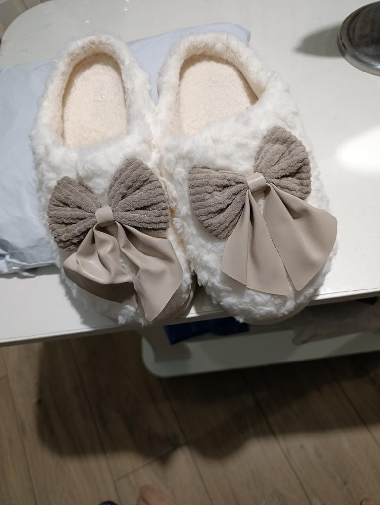 Women's Cozy Plush Bow Cotton Slippers - Anti-Slip, Warm, Cute Design for Autumn/Winter 2024