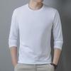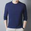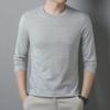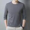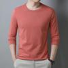 Men's 100% Polyester Long-Sleeve Round Neck T-Shirt - Solid Color, Casual & Versatile for Spring & Autumn.