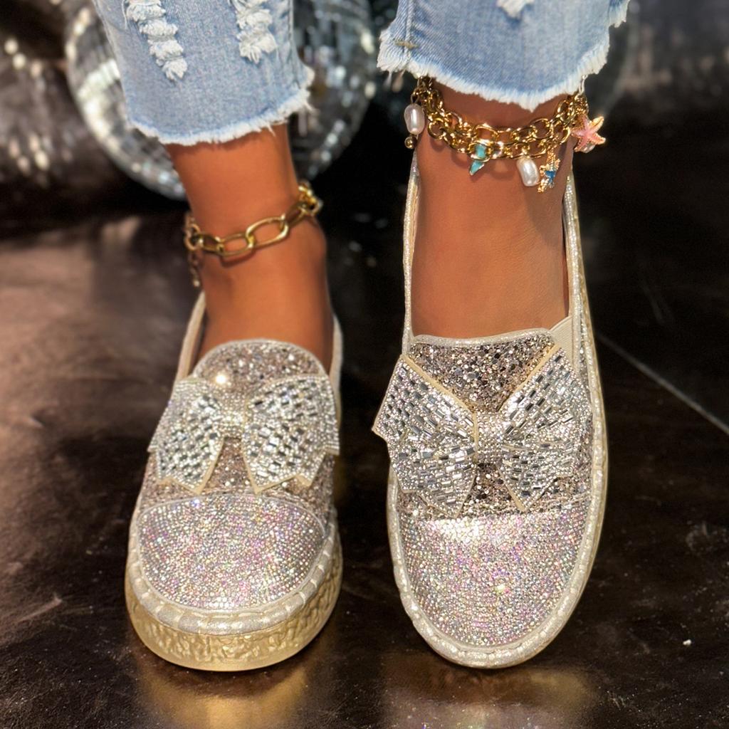 Large Size Women's Shoes One-pedal Lazy Muffin Platform Casual Single Shoes Spring and Summer New Rhinestone Bow Loafers