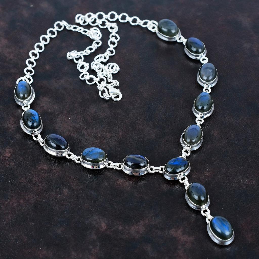 Labradorite Necklace Gemstone Jewelry Unique Necklace 925 Sterling Silver Adjustable Chain Necklace Handmade Elegant Jewelry Gifts for Women