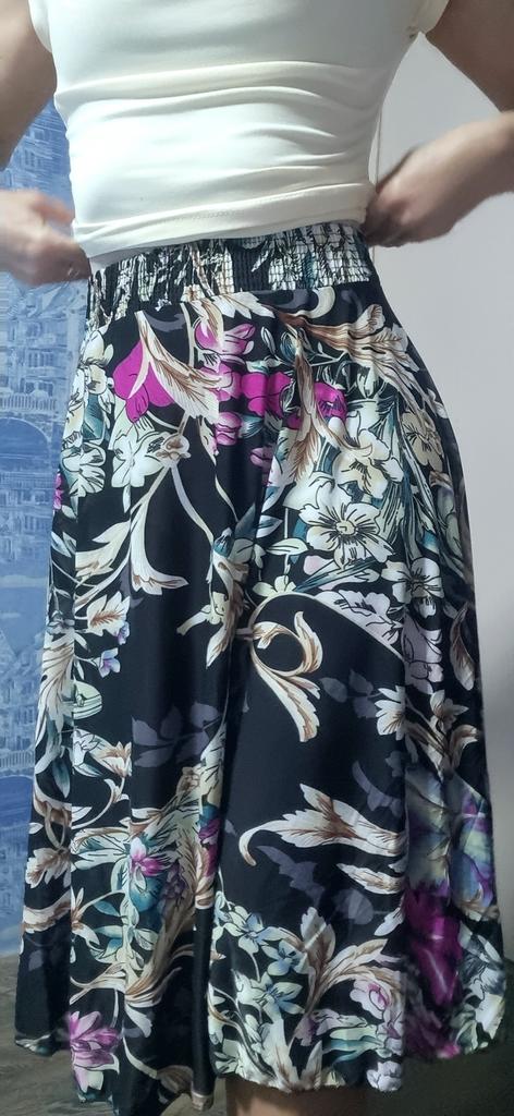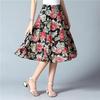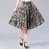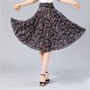 Summer Mid-length Floral Skirts Elastic Waist Women Loose Casual Ice Silk Chiffon Beach Dress Female Faldas