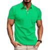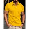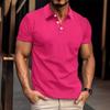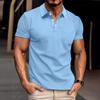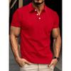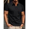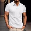 Men's Summer Waffle Striped Lapel Solid Color Button-up Short-sleeved Polo Shirt