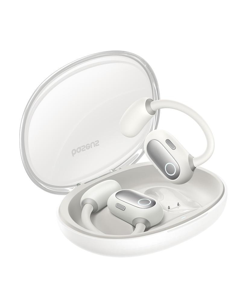 Baseus Eli Sport 1 Wireless Earphones, Open Ear, Over-Ear Type, Does Not Block Your Ear, Large 16.2mm Driver, Detachable Strap Included, Up to 30 Hours Playtime, Type-C Fast Charging, IPX4 Drip Resistant, Ideal for Sports, Bluetooth 5.3 Compatible with Dedicated App, Open Type (Stellar White)