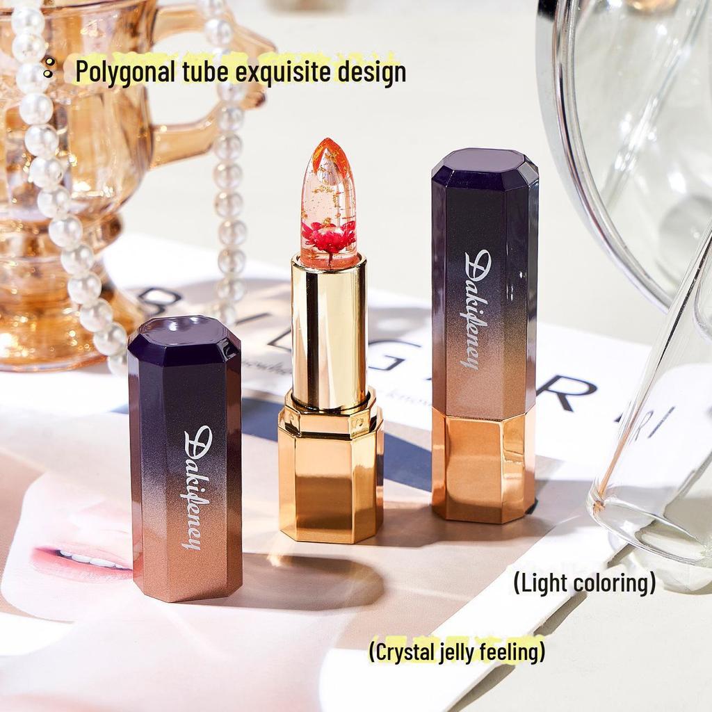 Petal Flower Color-Changing Jelly Lipstick with Gold Foil: Non-Stick, Long-Lasting, Moisturizing Formula.