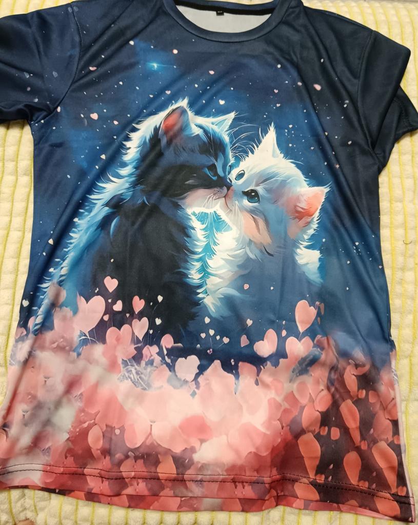 Women's Fashion 3D Abstract Cat Pattern Printed Short Sleeve Tops 2024 New Women's Clothing T-shirts Summer Loose Blouse & Tees