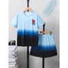 2-Piece Set of Boys' Blue White Gradient Round Neck T-Shirts with Letter Print Pattern Comfortable Breathable Shorts Suitable for Outdoor Sports Wear