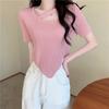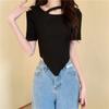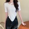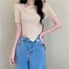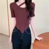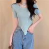 Design Sense Irregular Exposed Collarbone Versatile Chic Short Section Knit Short-sleeved Tops Casual Essential Comfort Style Slim Fit Pullovers Tees