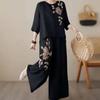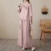 Embroidery Set Linen Summer Shirt Pullover Short Sleeved Lightweight Imitation Cotton Linen Wide Leg Pantsshow Top Two-Piece Set