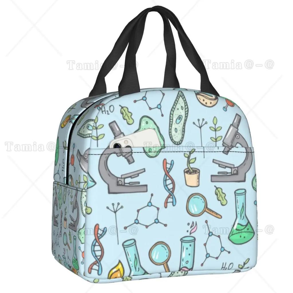 Biology And Chemistry Insulated Lunch Tote Bag for Women Natural Science Studies Resuable Cooler Thermal Bento Box School