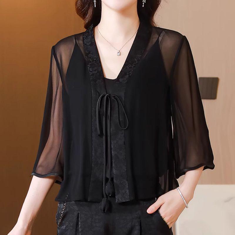 Mid Sleeve Shawl Summer Camisole, Paired with A New Chiffon Cover Summer Black Chiffon Cardigan Ice Silk Top