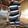 Men's T-shirt Suits 2 Pieces Outfits Tee Shorts Short Sleeve Crew Neck Summer Stripes Fashion Casual Vacation Daily Going Out Wear