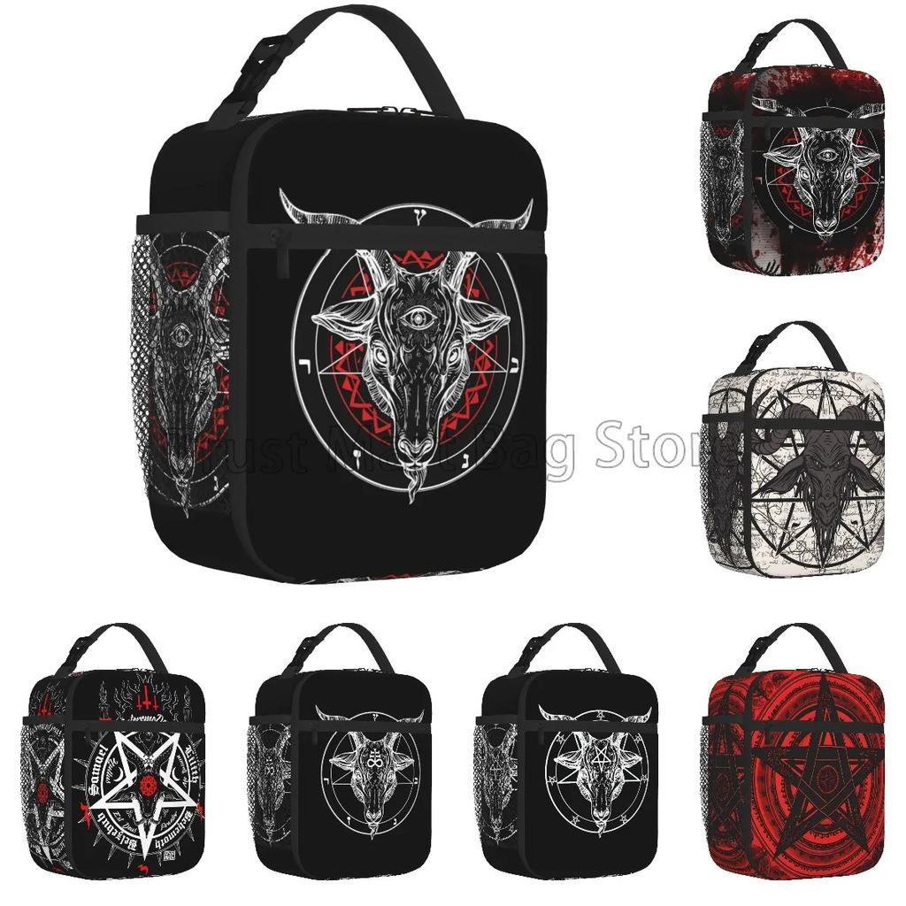 Baphomet Pentagram Satantic Occult Church of Satan Goat Goth Lunch Box for Travel Picnic Reusable Waterproof Insulated Lunch Bag