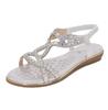 Women Sandals Flat Fashion Rhinestone Summer Sandals Shoes Solid Color Casual Summer Shoes Open-toed Wedge Shoes Woman