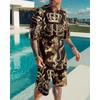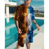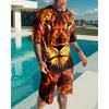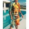 Roar Golden Lion Head Short Sleeve 2Pcs Set 3D Print Men Sweatshirt O-neck T-Shirt Set Men Oversized Tshirt Suit Men Clothes