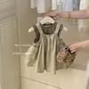 Girl's Summer Thin Leisure Suit Middle and Small Children Round Neck Pullover T-shirt + Work Back Dress Casual Two-piece Set